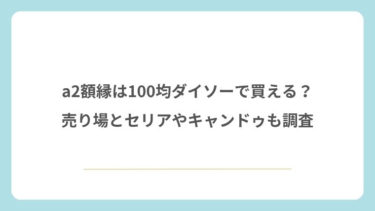 当記事では、A2額縁は100均ダイソーで買えるのか、売り場やセリア、キャンドゥとの違いもあわせて紹介しました。