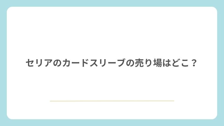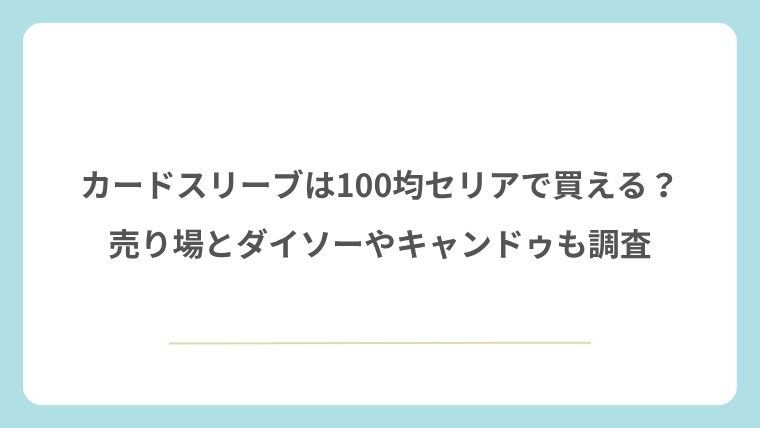 そこで当記事では、カードスリーブは100均セリアで買えるのかをはじめ、売り場、サイズ一覧、おすすめ商品、ダイソーやキャンドゥとの違いまでわかりやすく紹介していきます。