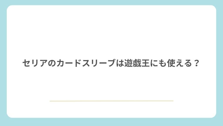 また、セリアのカードスリーブが遊戯王やポケモンカードに使えるのか、ダイソーやキャンドゥと比べて選びやすいのかも気になる方は多いのではないでしょうか。