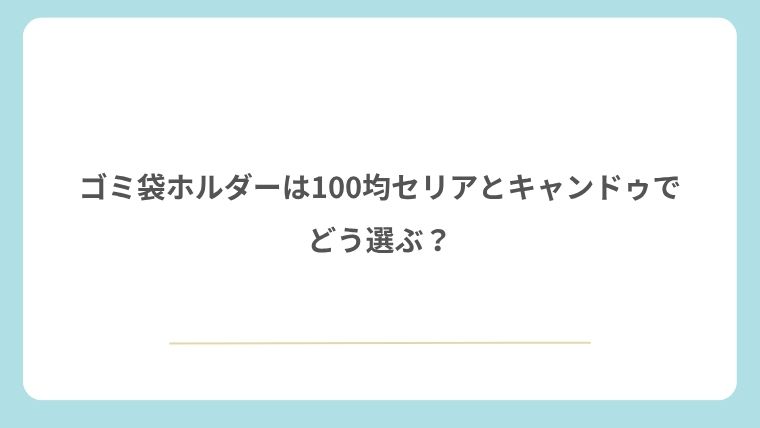 ゴミ袋ホルダーを100均セリアとキャンドゥで選ぶ場合は、収納したい場所と求める見た目で判断するのがおすすめです。セリアはキッチン収納に流用しやすい商品が多く、キャンドゥは省スペース用品を探したいときに比較候補として見やすい印象があります。