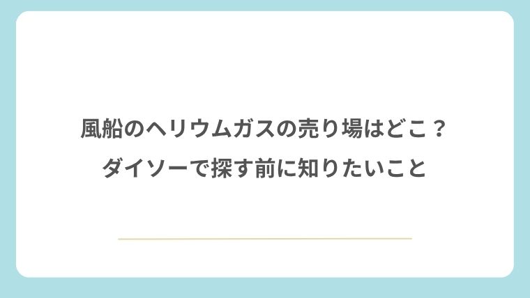 つまり、ダイソーは風船用ヘリウムガスを買う店というより、飾り付け一式を安くそろえる店として使うほうが相性がよいです。風船だけダイソーで用意し、ガスは別の店で確保する流れが現実的ではないでしょうか。