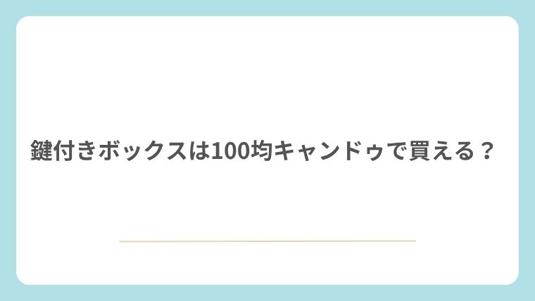 キャンドゥも、完成品の鍵付きボックスが定番で並ぶタイプではありません。ですが、コンテナ、収納ケース、ポーチ、南京錠などを組み合わせて使う発想なら十分候補になります。