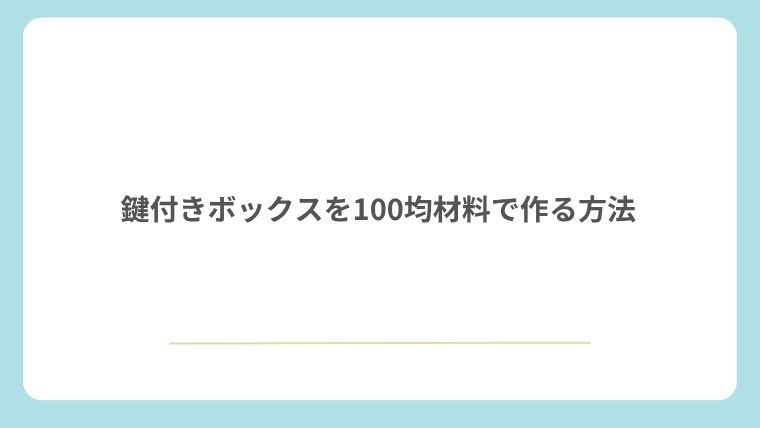 100均セリアで完成品が見つからないなら、DIYに切り替えるのがいちばん現実的です。材料費を抑えながら必要なサイズに調整できるので、鍵付きボックスを安く用意したい人にはかなり向いています。