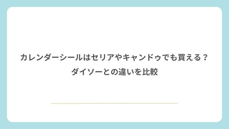 カレンダーシールは、ダイソーだけでなくセリアやキャンドゥでも探せることがあります。ただし、時期や店舗ごとの取り扱い差が大きいため、必ずどこでも同じように買えるとは限りません。選び方としては、実用性重視ならダイソー、見た目重視ならセリアも候補に入れて比べると分かりやすいです。