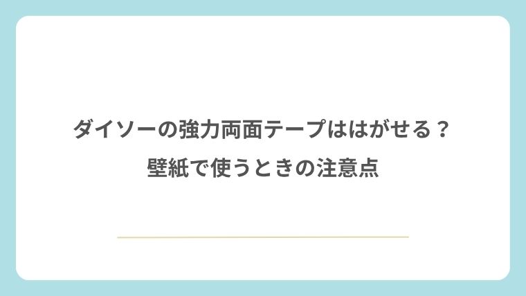ダイソーの強力両面テープは、種類によってははがしやすさを意識した商品もあります。ただし、壁紙では話が別で、テープ側よりも壁紙の表面が先に傷むことがあります。とくに賃貸では、貼る前の判断がとても大切です。