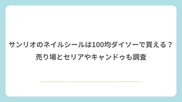 そこで当記事では、ダイソーのサンリオネイルシールについて、買えるかどうかの結論から売り場、在庫確認のコツまで分かりやすく紹介していきます。