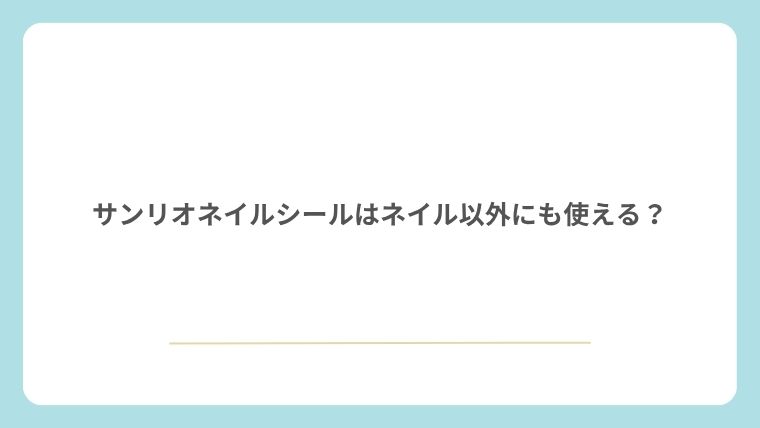 ダイソーのサンリオネイルシールは、見つけた時点でネイル用とデコ用に分けて考えると使い道が広がります。110円でここまで応用できるなら、人気が高いのも納得ですね。
