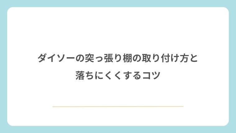 ダイソーの突っ張り棚は、取り付け方を間違えるとすぐ落ちる原因になります。逆に、基本どおりに設置して補助グッズも使えば、軽い収納ならかなり安定しやすくなります。