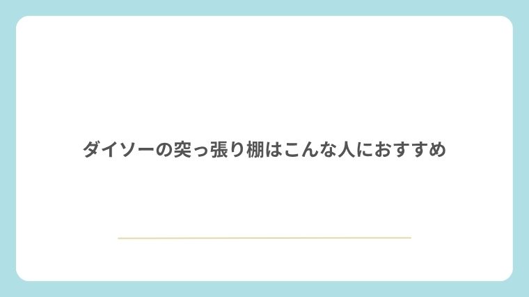 ダイソーの突っ張り棚は、完璧な大型収納というより、使いにくいすき間を無駄なく使うための道具として考えると満足度が高いです。小さな不便を減らしたい方にぴったりですね。